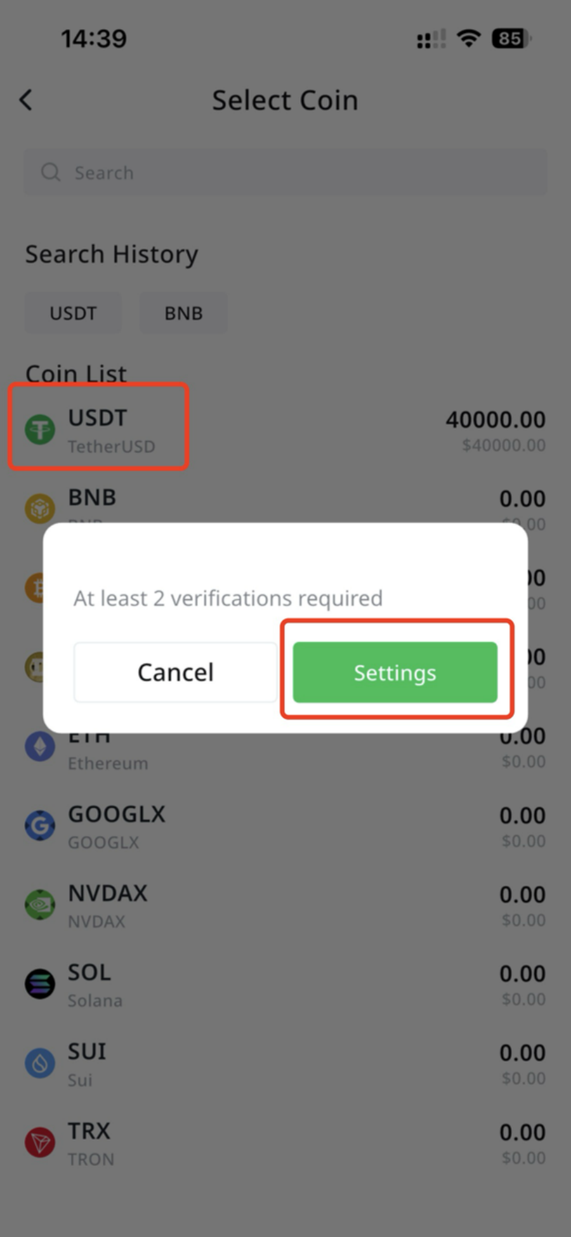 - Select the 【Coin】 to withdraw, and then withdraw to your corresponding account. Note: For 【Withdraw】, at least 2 of the following Security Verifications must be enabled: Google Verification Code, Mobile, Email.