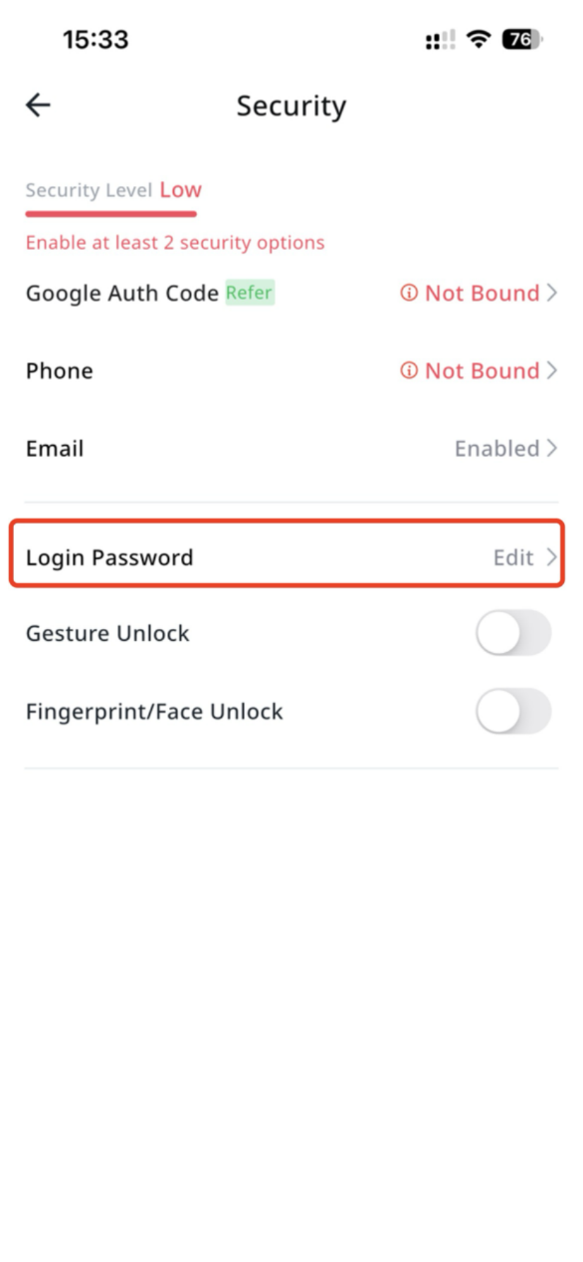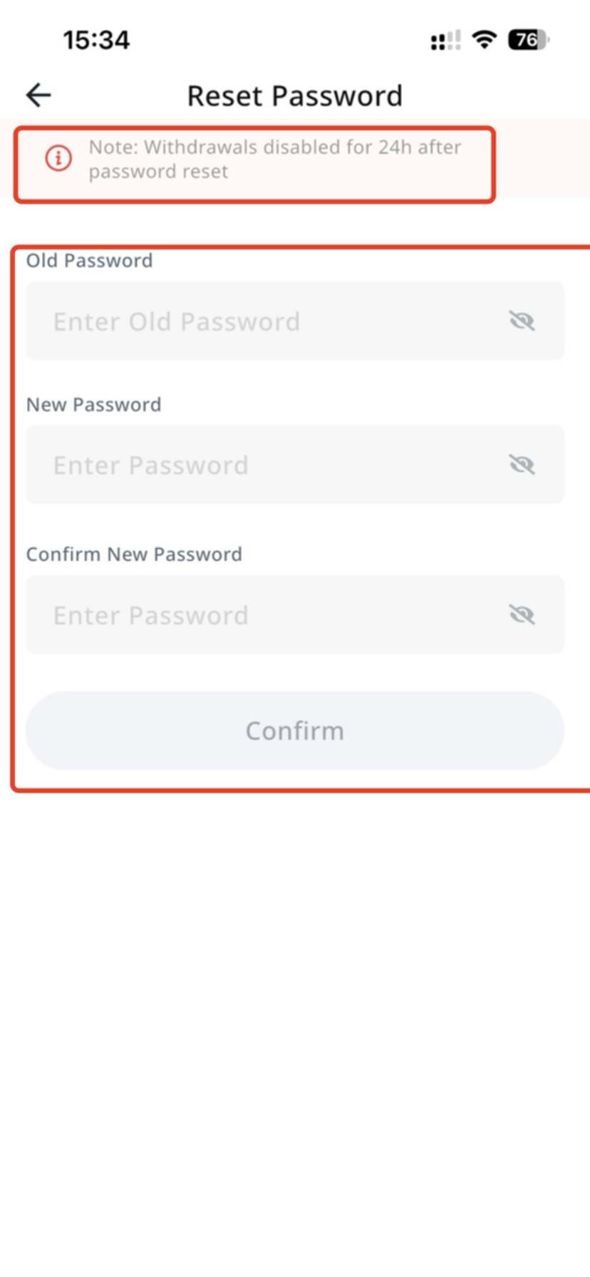 - Tap 【Login Password】 to edit. Note: After resetting the login password, withdrawals are prohibited for 24 hours.