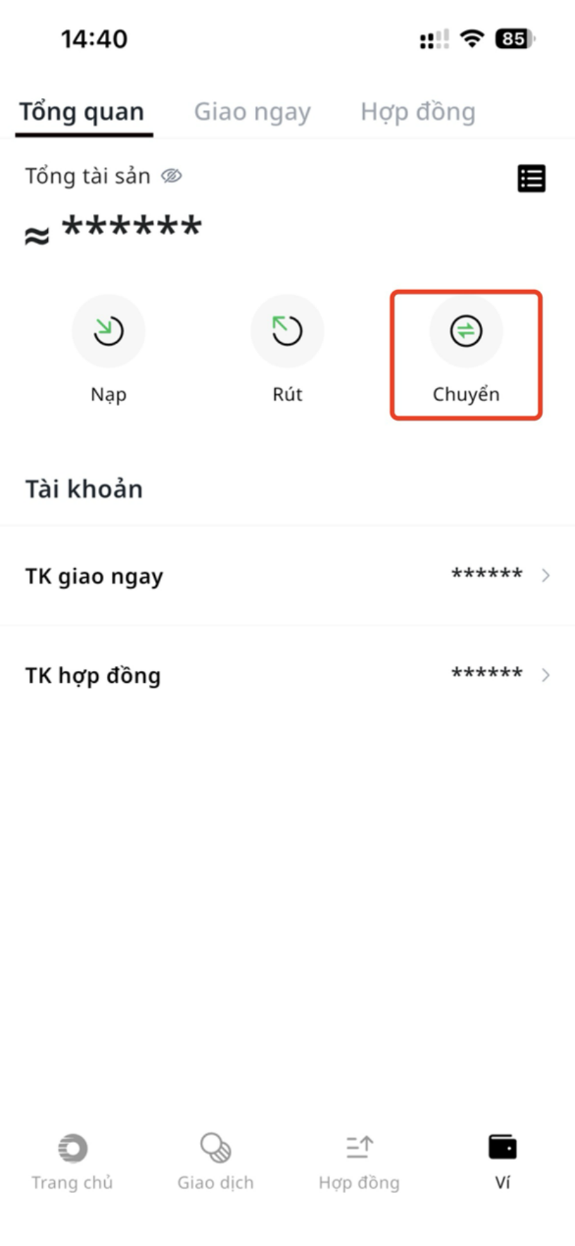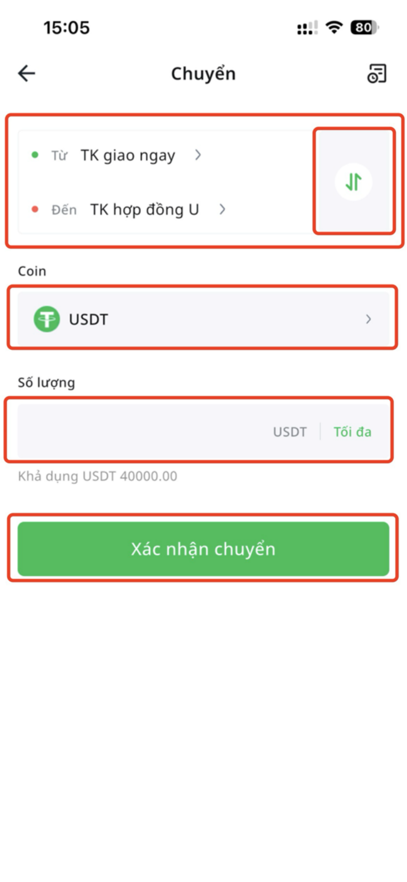 - Có thể chuyển đổi tự do, ví dụ: từ 【Tài khoản Spot】 sang 【Tài khoản Hợp đồng U】.