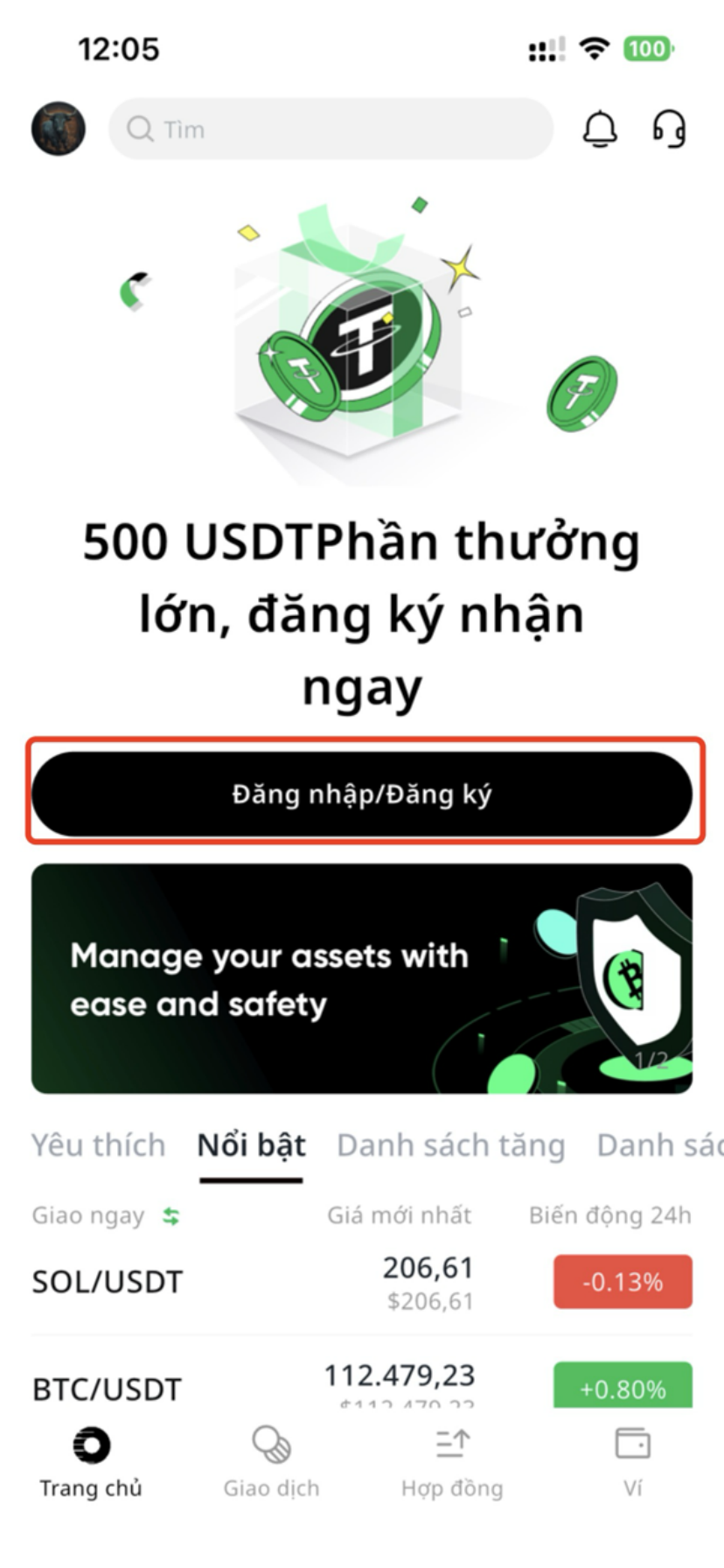 - Mở ứng dụng RooEx, trên trang chủ nhấn 【Đăng nhập/Đăng ký】 để bắt đầu đăng ký hoặc đăng nhập.