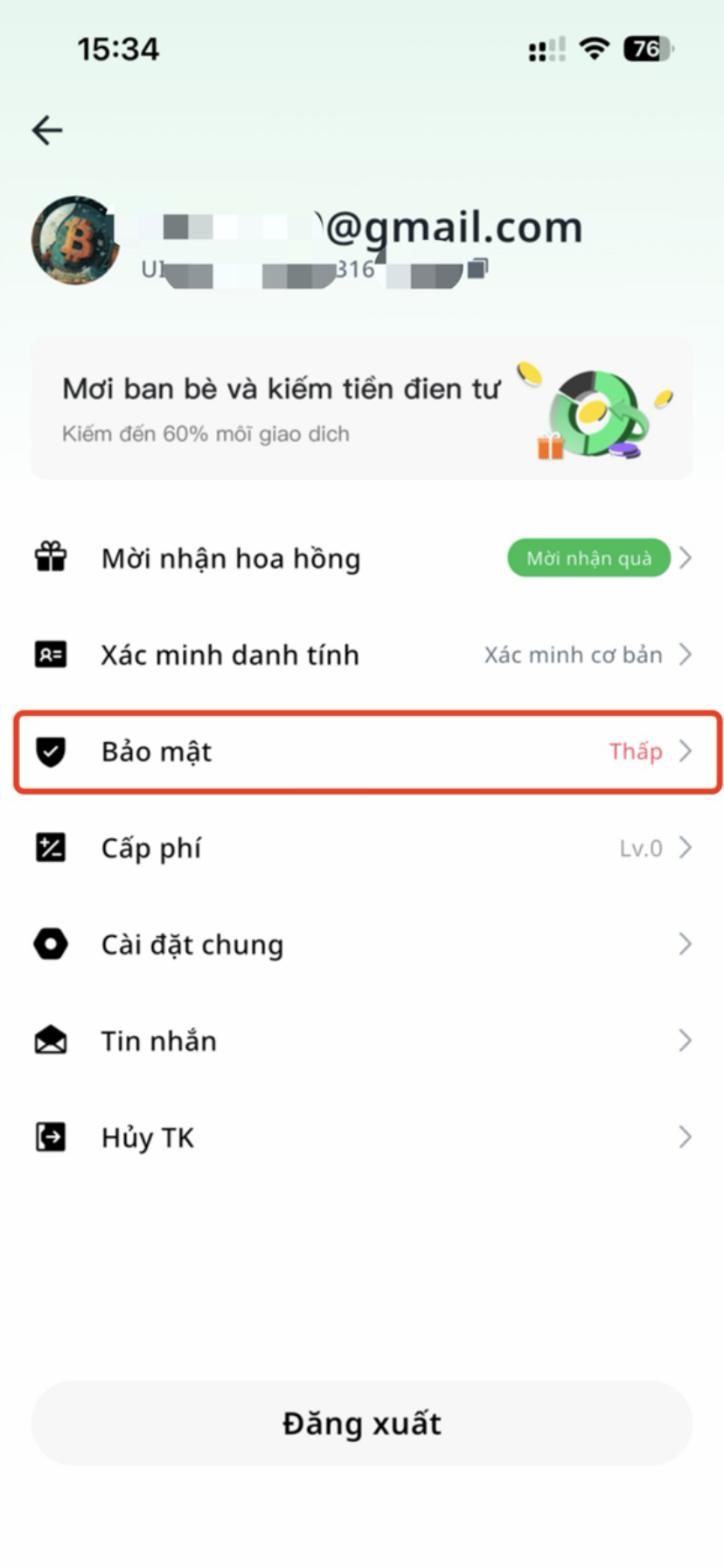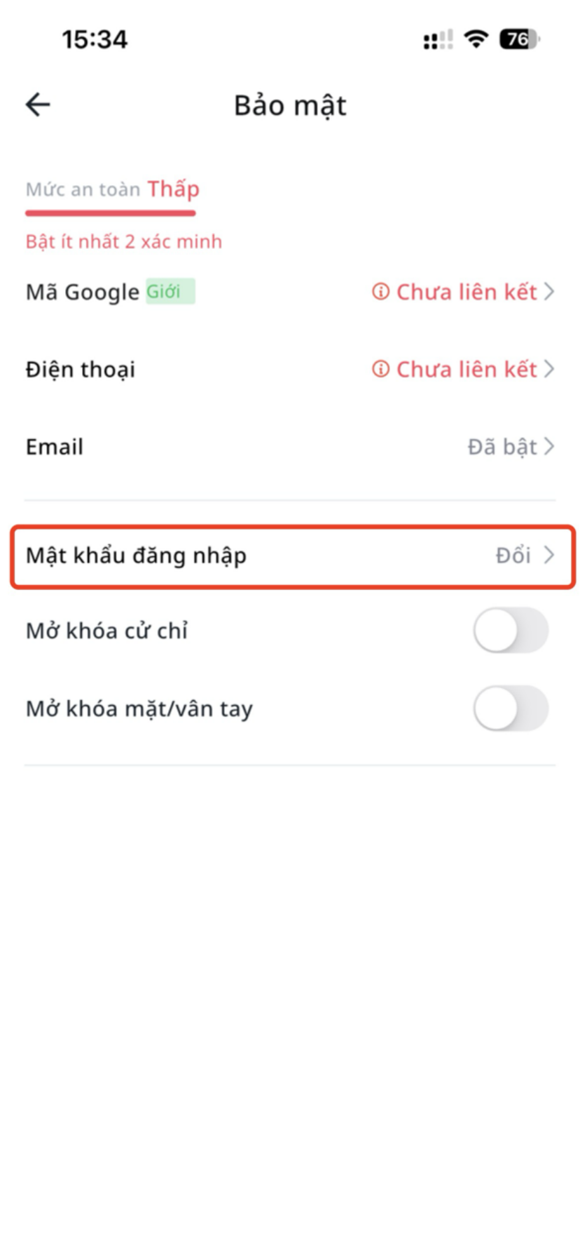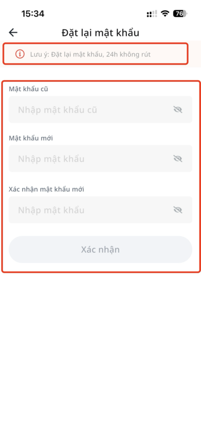 Lưu ý: Sau khi đặt lại mật khẩu đăng nhập, sẽ cấm rút tiền trong 24 giờ.