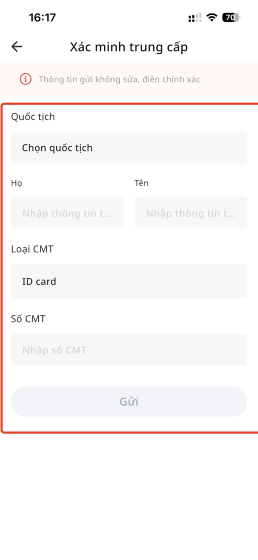 - Chọn 【Loại giấy tờ】, nhập chính xác 【Số giấy tờ】.
