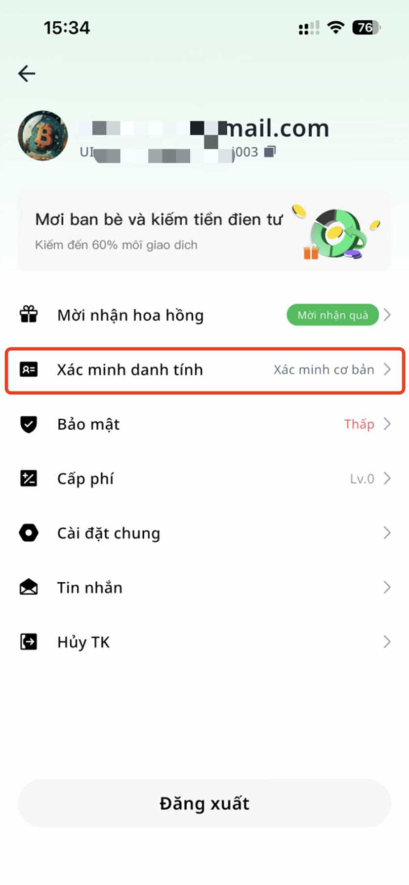 - Nhấn 【Xác thực danh tính】.