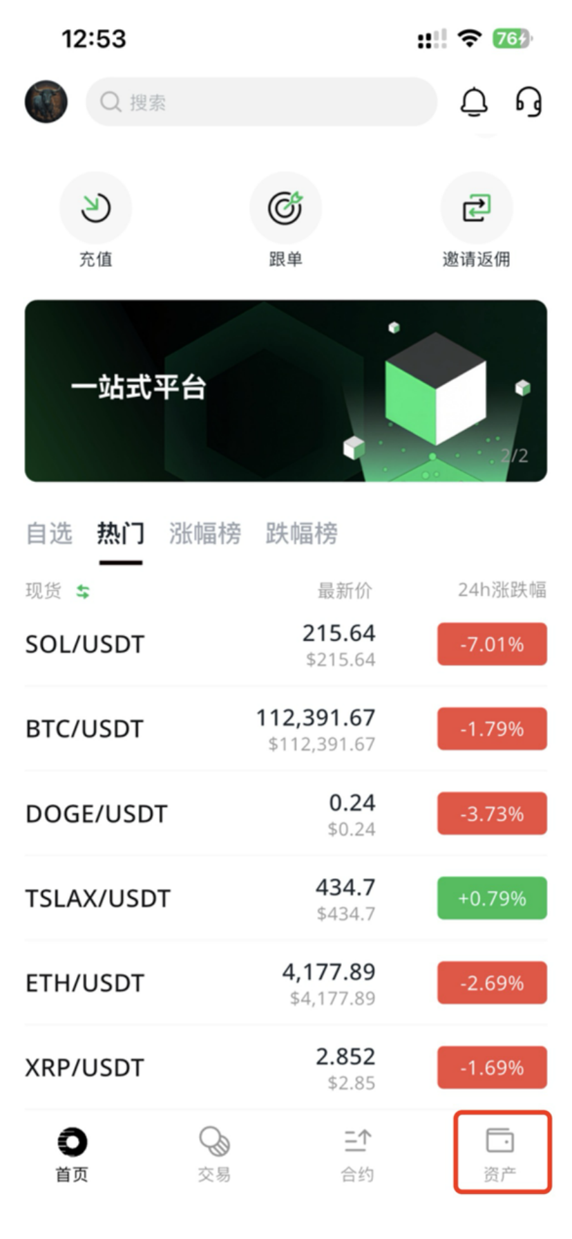 如何进行提现操作(APP) 2025年12月16日 13:57 更新 登录RooEx app,找到右下角【资产】页面,点击【提现】。注意:只能提现【现货账户】资产,【合约账户】资产可以先【划转】到【现货账户】,再提现。选择要提现到【币种】,然后提现到自己对应的账户。注意:【提现】至少开启以下2项【安全验证】:谷歌验证码、手机、邮箱。 image.gif 4 MB 下载 image.gif 4 MB 下载 image.gif 4 MB 下载 相关文章 如何邀请好友注册 费率标准 合约跟单协议 如何划转 如何注册账户(网页版)